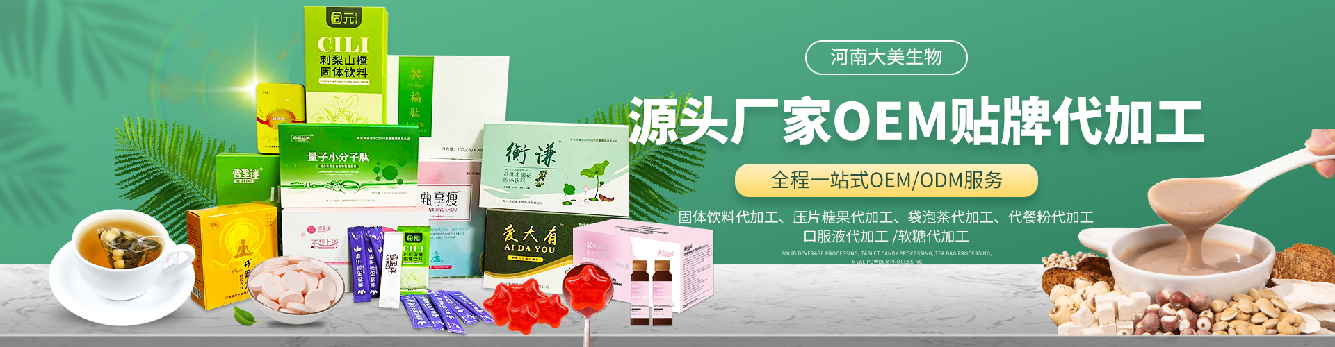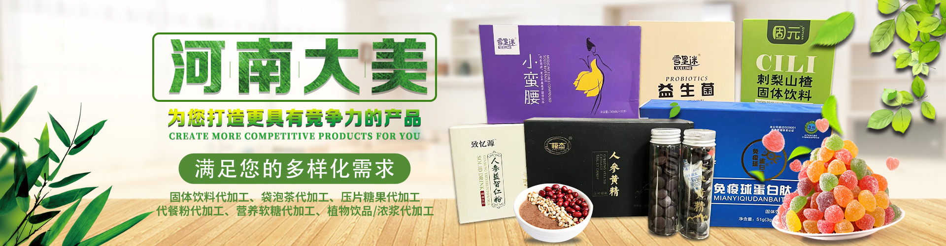河南大美生物科技股份有限公司是從事顆粒劑、(固體飲料類),壓片糖果代加工等研發(fā)和銷(xiāo)售為一體的生產(chǎn)企業(yè)。公司依托自身的高科技研發(fā)隊(duì)伍和營(yíng)銷(xiāo)團(tuán)隊(duì),為國(guó)內(nèi)外客戶提供營(yíng)養(yǎng)食品各劑型和規(guī)格的研制、生產(chǎn)、配方設(shè)計(jì)、批文申報(bào)等服務(wù),并為客戶提供多種形式的流通渠道及產(chǎn)品銷(xiāo)售服務(wù)工作。 您的要求就是我們的使命!我們的宗旨是與客戶“合作共贏,攜手向前”,共同創(chuàng)造事業(yè)新的輝煌!